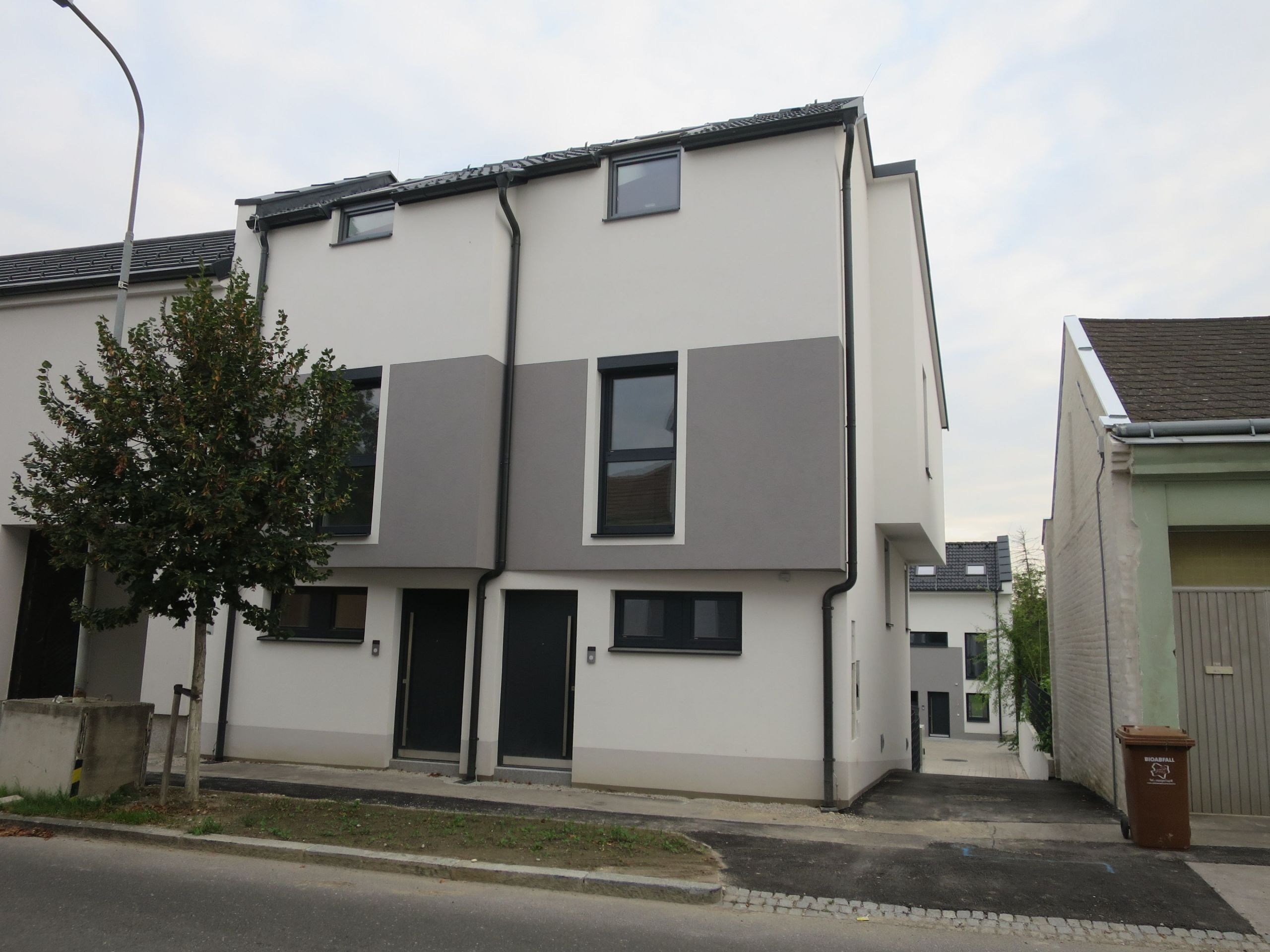 Alle Einheiten haben eine Gartenterrasse, 2 Doppelhaushälften haben auch eine Dachterrasse